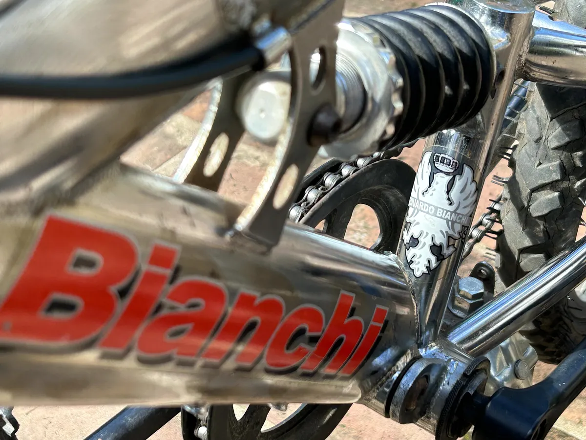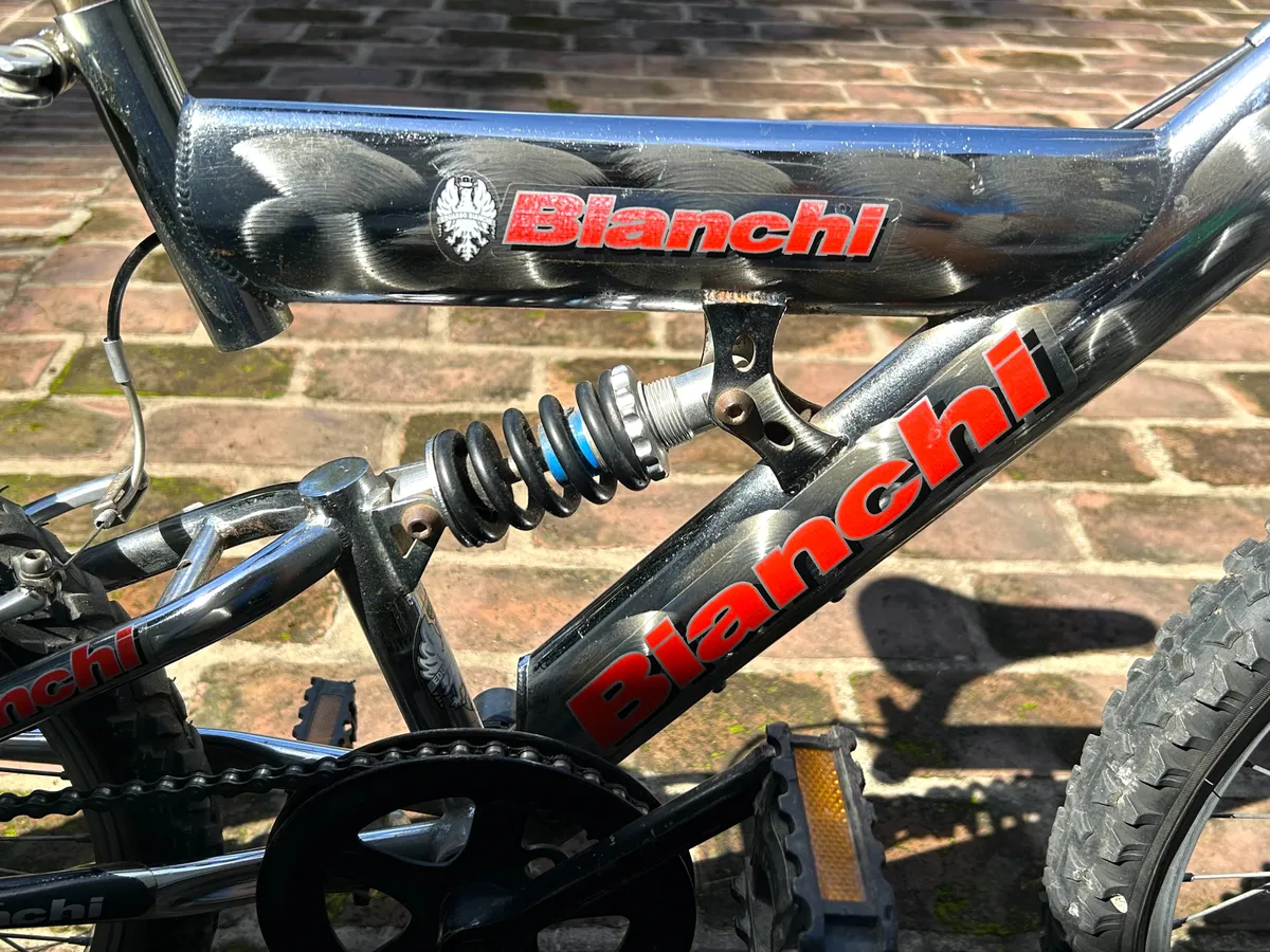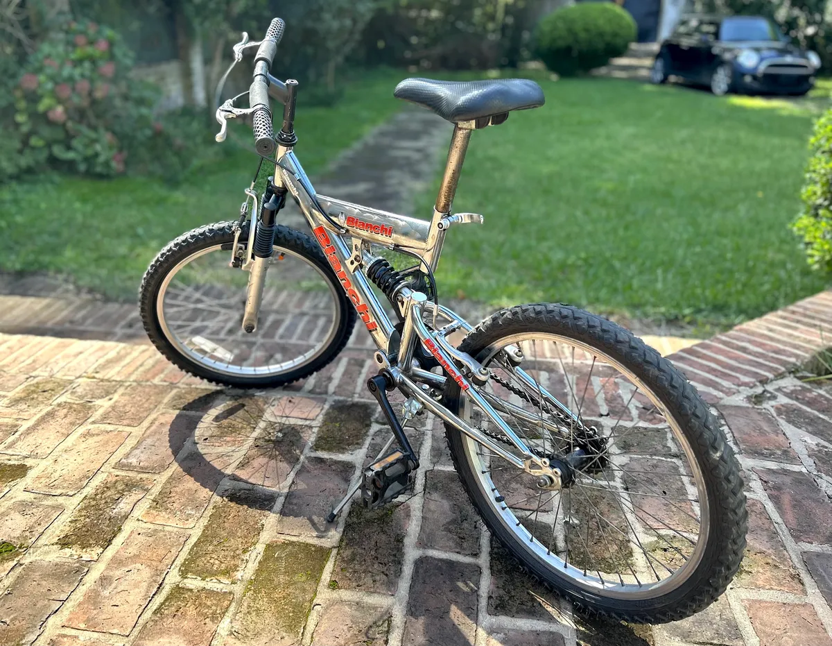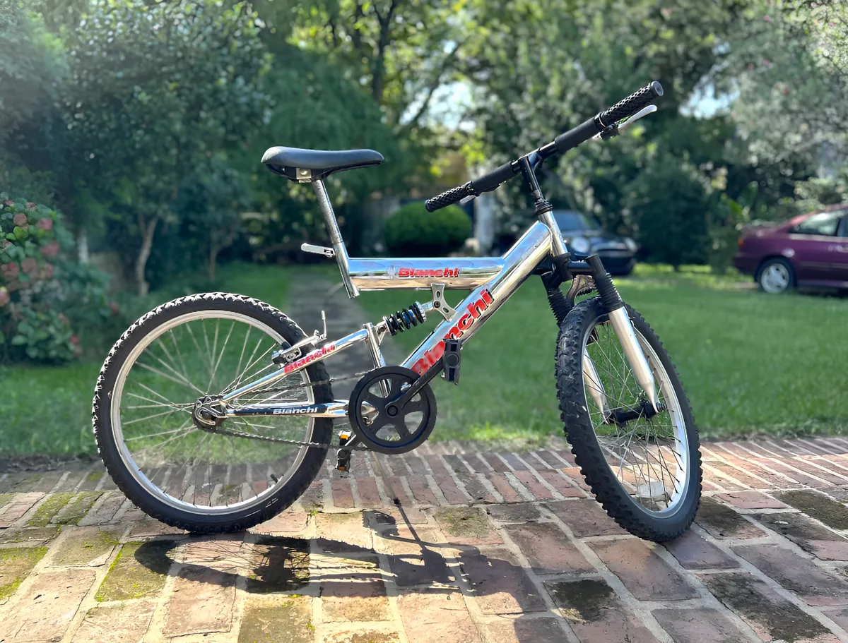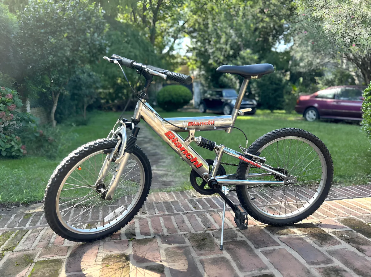 Bicicleta Bianchi rodado 20, con doble suspensión, frenos V-Brake y cuadro cromado. Ideal para niños o preadolescentes. En buen estado general, lista para usar.